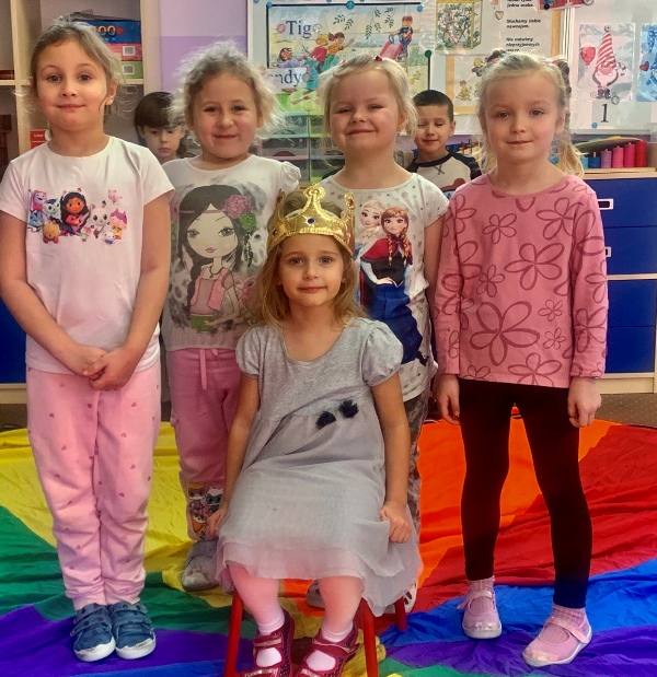 W grupie Muchomorków obchodziliśmy Dzień Postaci z Bajek. Dzieci przyszły przebrane za ulubionych bohaterów i uczestniczyły w zabawach muzyczno-ruchowych oraz w rozwiązywaniu bajkowych zagadek. Elementem zajęć było także kodowanie z Zosią w ramach projektu „Steamowa Kraina” – przedszkolaki programowały trasę robota, aby doprowadzić go do wybranej postaci z bajki. Nie zabrakło również kosztowania soku z „gumijagód” oraz oddzielania grochu od fasoli. Dzieci aktywnie i z radością uczestniczyły w zajęciach, rozwijając logiczne myślenie, kreatywność i współpracę.