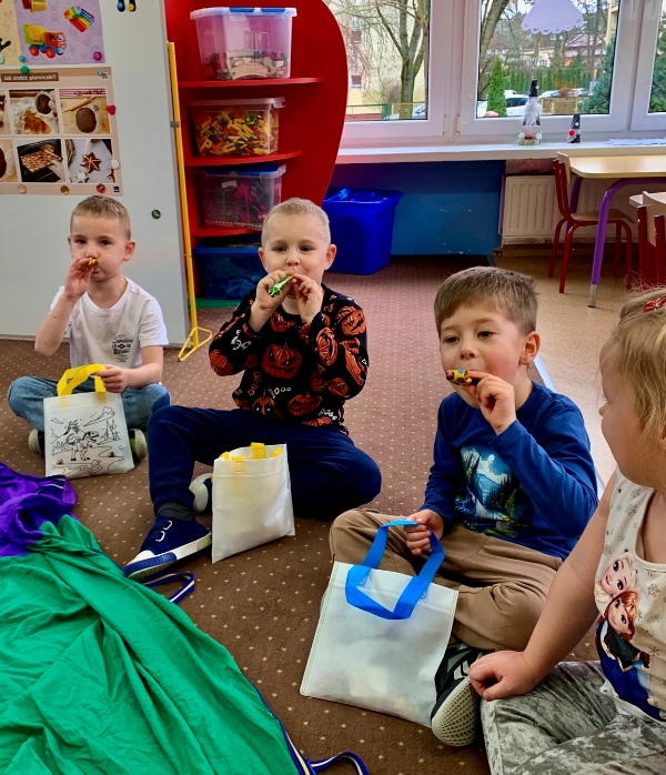Nasza grupa bierze udział w projekcie „Czuciaki z Krainy Emocji”, który ma na celu wspieranie rozwoju inteligencji emocjonalnej. Podczas tej fascynującej całorocznej przygody uczestnicy spotkają się z Czuciakami. Te małe stworzenia o intrygującej nazwie przybędą prosto z Krainy Emocji ze specjalną misją – pomogą nam poznać, zrozumieć i regulować nasze emocje. Nie zabraknie też momentów, kiedy to dzieci wyruszą do Krainy Emocji, aby odkrywać tajemnice świata uczuć. Postaciami, które już poznaliśmy są „Śmieszka z Wyspy Radości”, „Markotek z Wyspy Smutku”, oraz „Pan Łał z Wyspy Zdziwienia”.