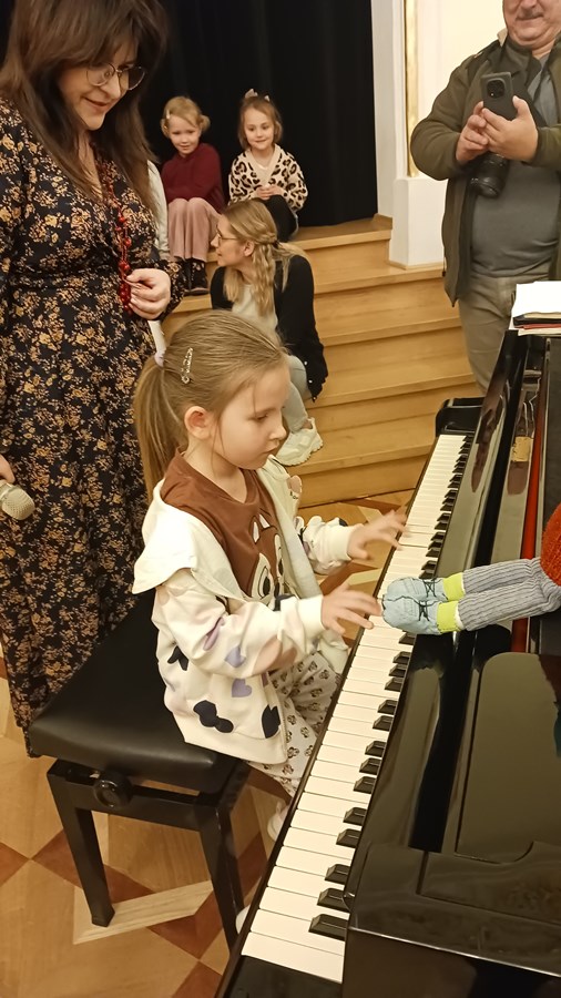 23.10 25 mieliśmy przyjemność wzięcia udziału w koncercie „Chopin Edukacyjnie” zorganizowanym przez TDK. Dzieci słuchały utworów Chopina granych na fortepianie, wiolonczeli i flecie. Przedszkolaki zatańczyły poloneza oraz improwizowały własne melodie na fortepianie.