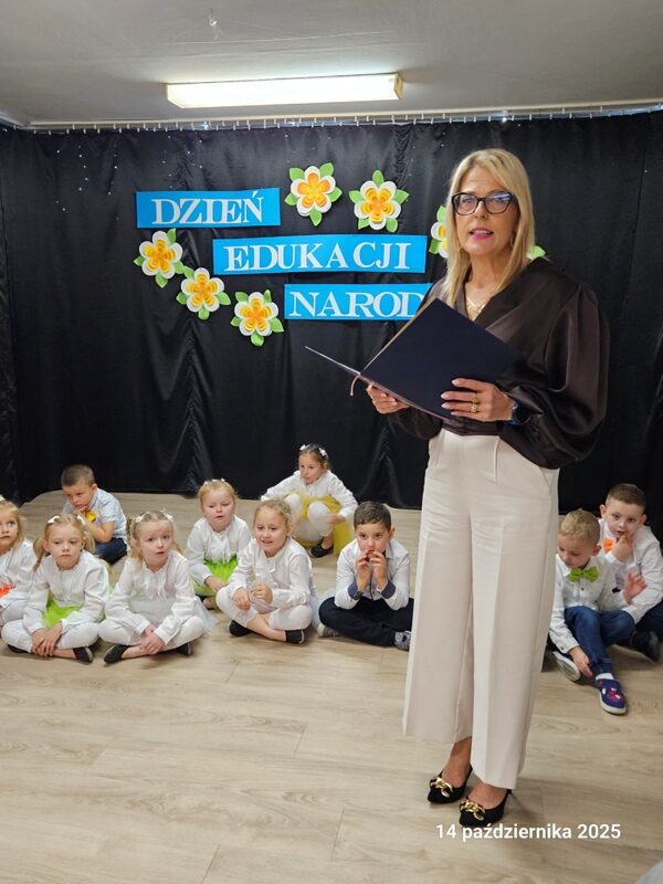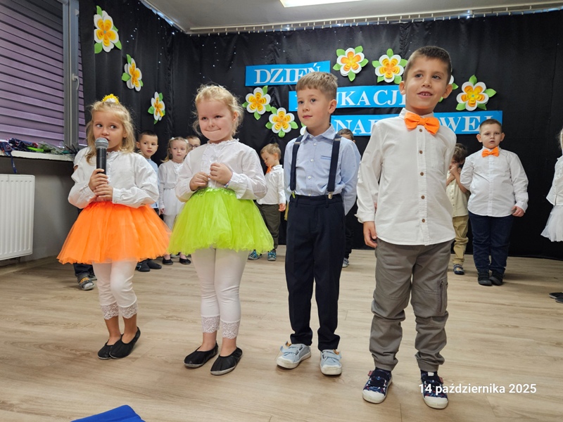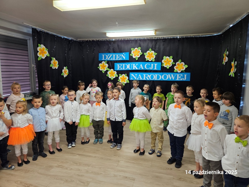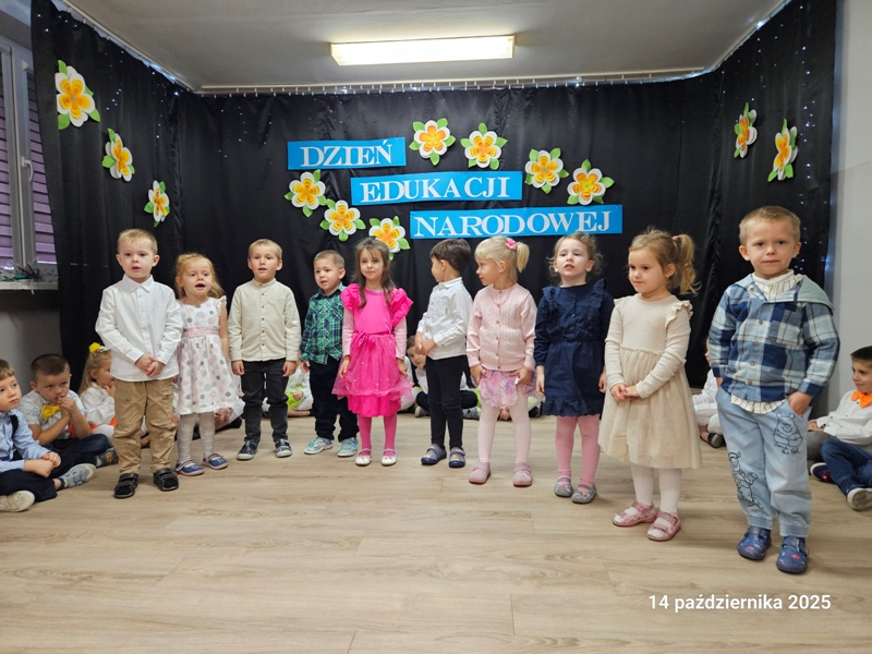 14 października obchodziliśmy Dzień Edukacji Narodowej. Dzieci złożyły życzenia wszystkim pracownikom przedszkola oraz zaprezentowały krótki program artystyczny. Nie zabrakło wierszy, piosenek i uśmiechów. Był to wyjątkowy dzień pełen wdzięczności, radości i miłych słów.