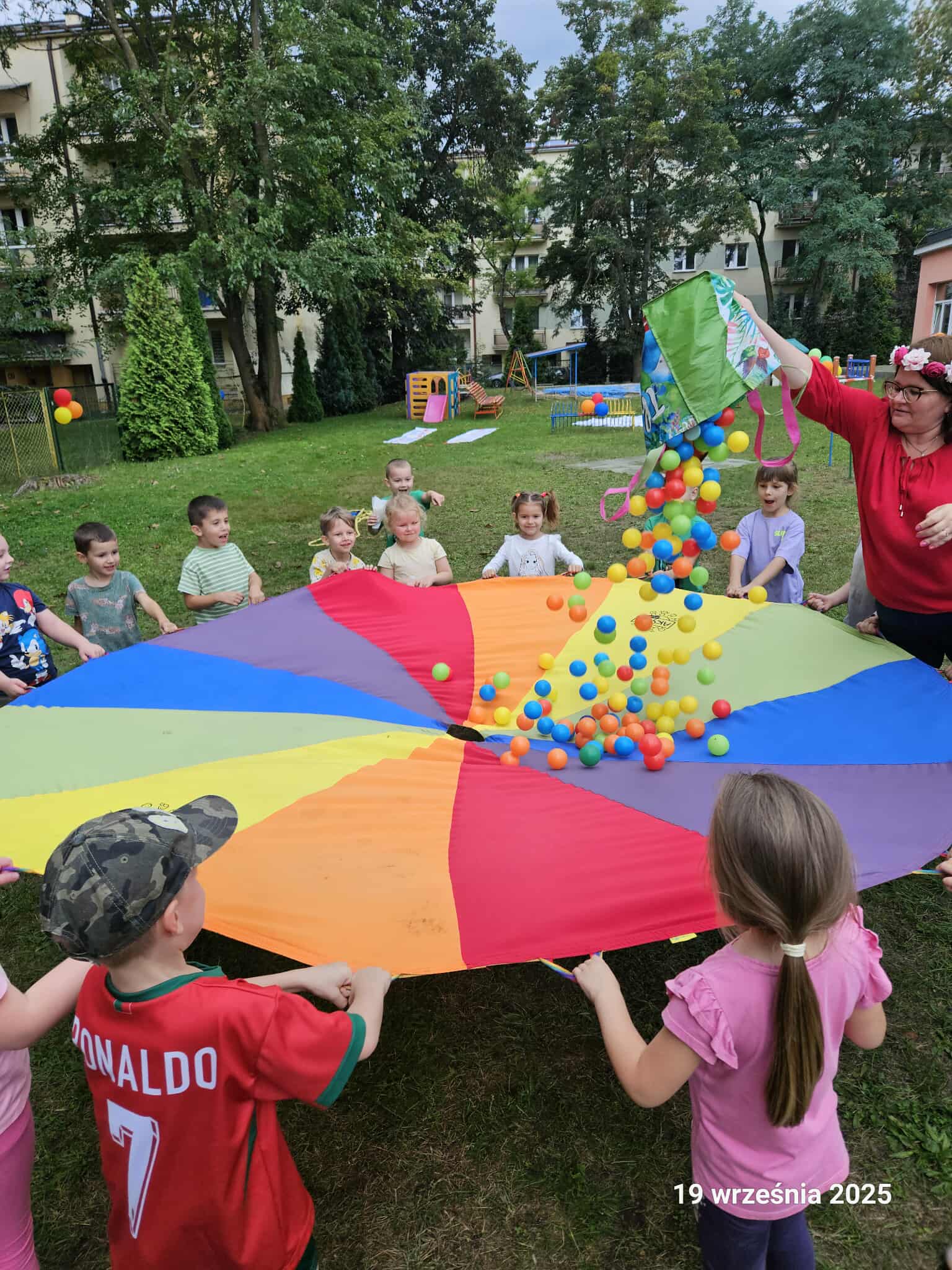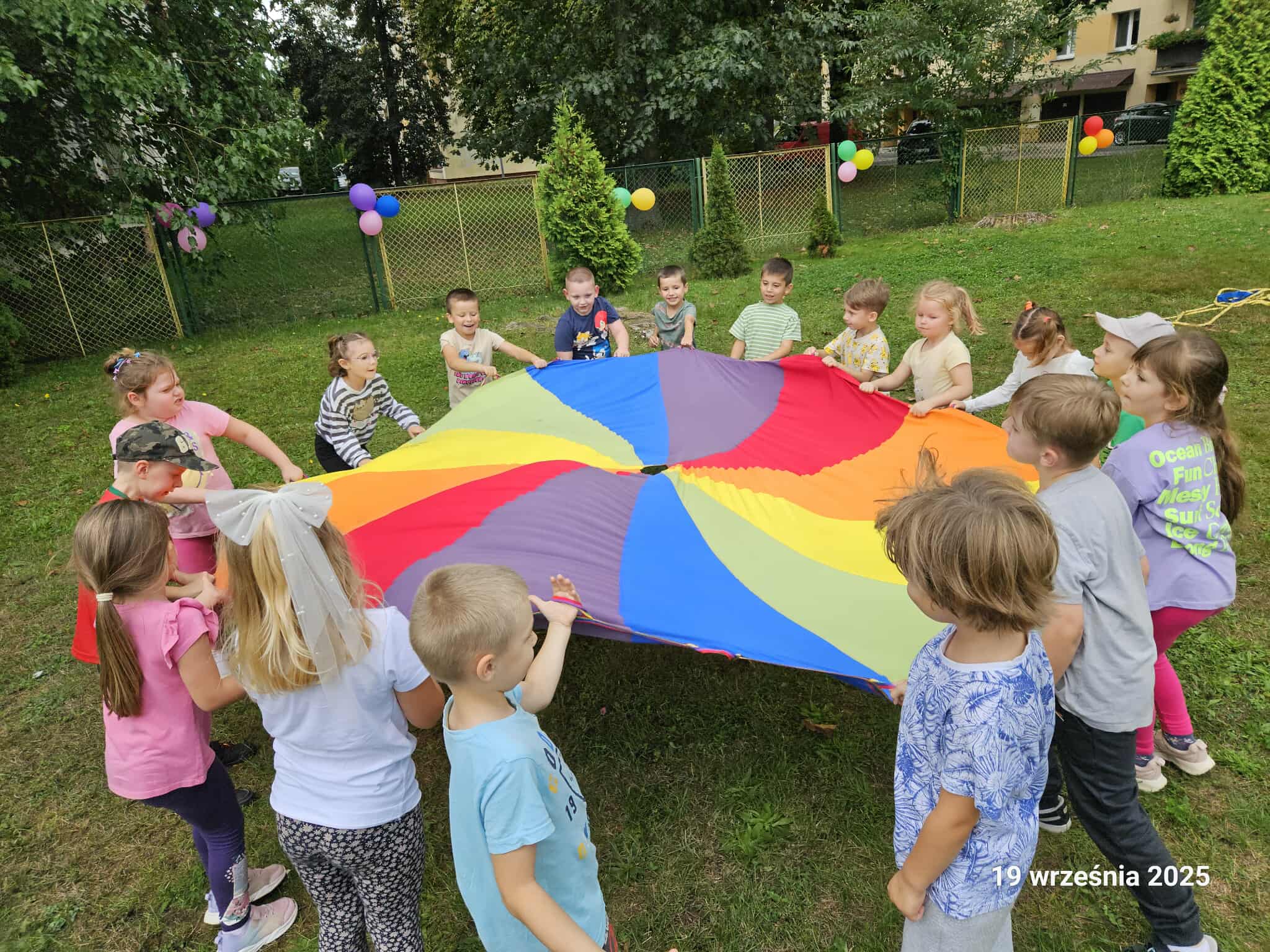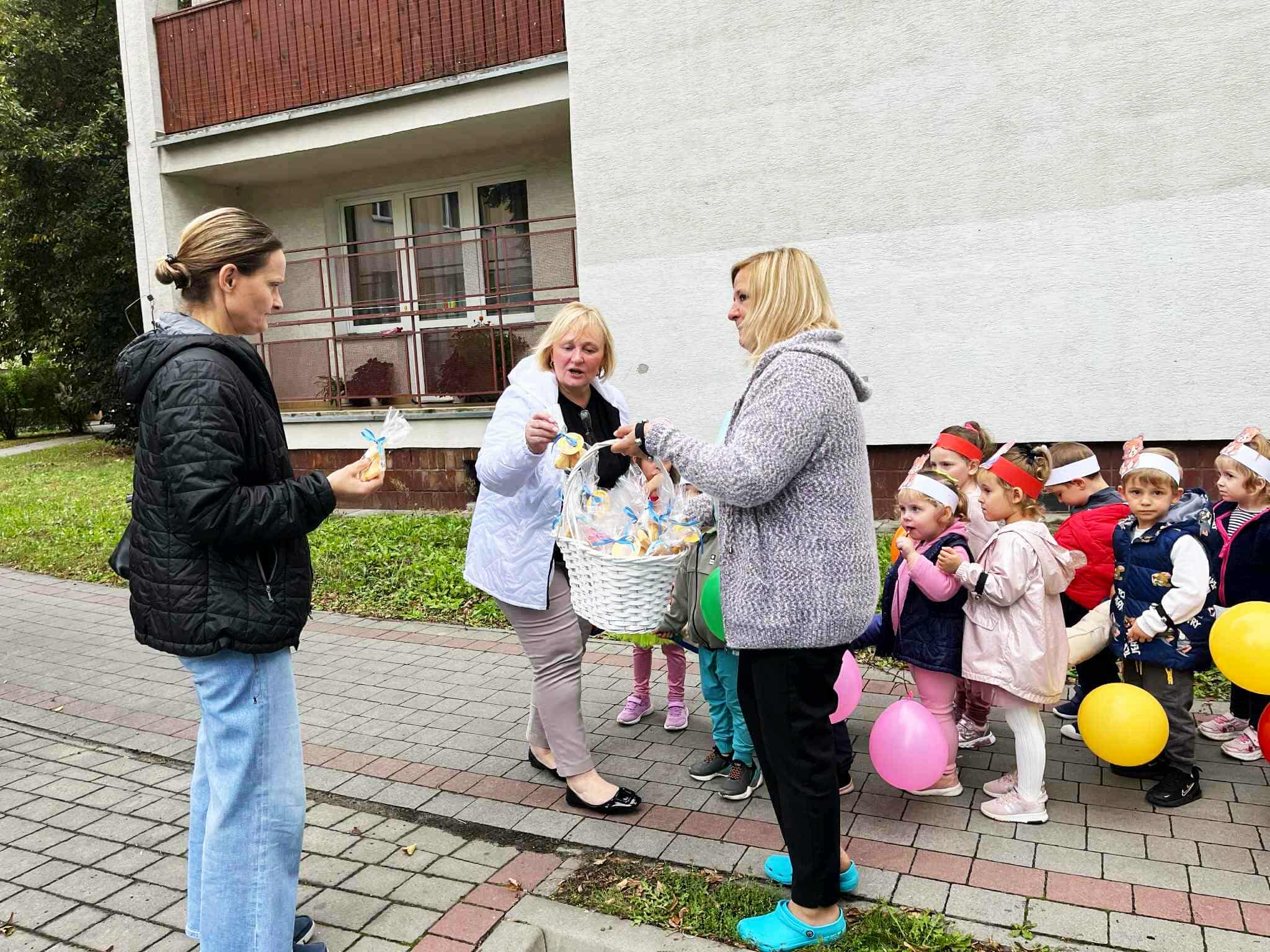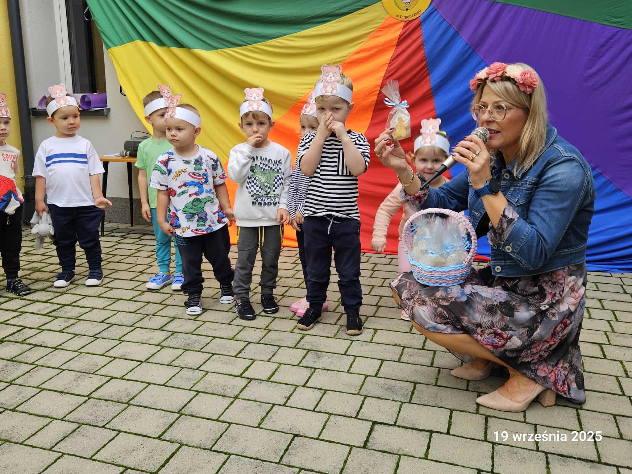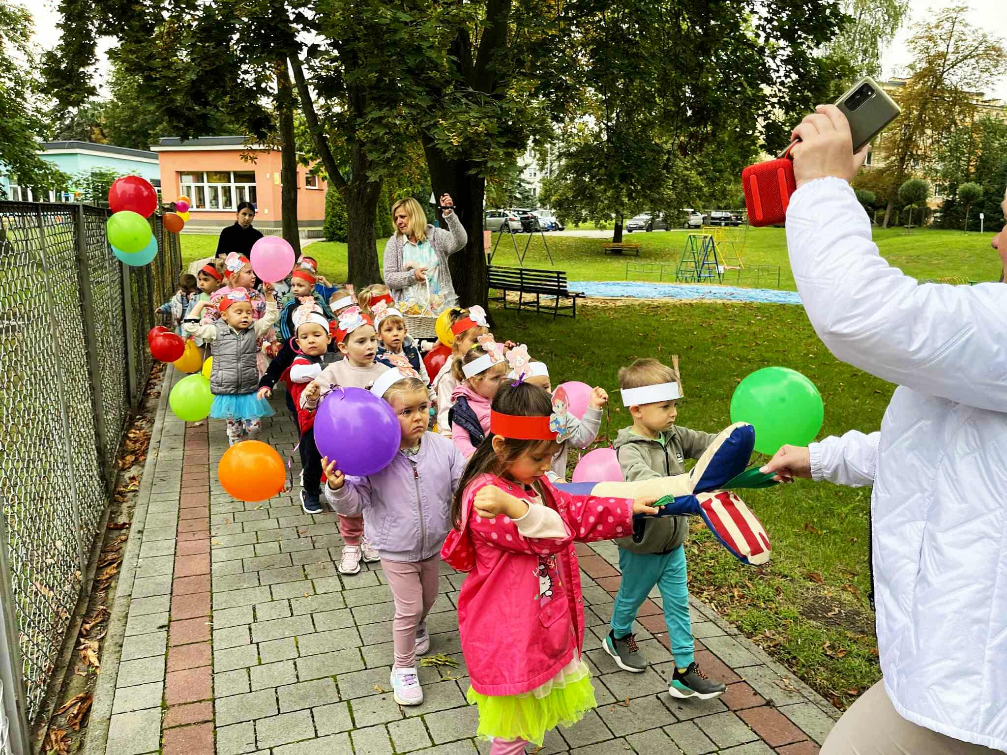 19 września w naszym przedszkolu hucznie świętowaliśmy. Oprócz tradycyjnego nadania nazw starszym grupom, było mnóstwo atrakcji. Barwnym korowodem przeszliśmy ulicami Tarnobrzega i częstując napotykanych tarnobrzeżan ciasteczkami radośnie informowaliśmy ich o naszym święcie. Później na terenie ogrodu korzystaliśmy z atrakcji przygotowanych dla nas przez nasze panie nauczycielki, pracowników przedszkola i rodziców. Było mnóstwo zabaw ruchowych, zabawy przy muzyce, szaleństwo na dmuchańcu i słodki bufet. Radosnym okrzykom nie było końca. Relacji o naszym świętowaniu można słuchać w Radio Leliwa i czytać na łamach Tygodnika Nadwiślańskiego. Linki można znaleźć na naszej stronie Facebook: https://www.facebook.com/profile.php?id=61554473727724. Zapraszamy!