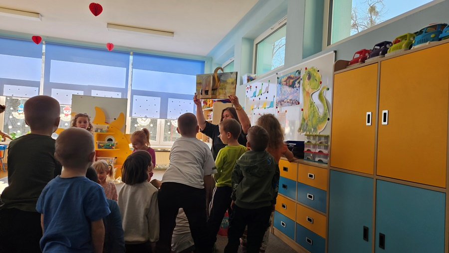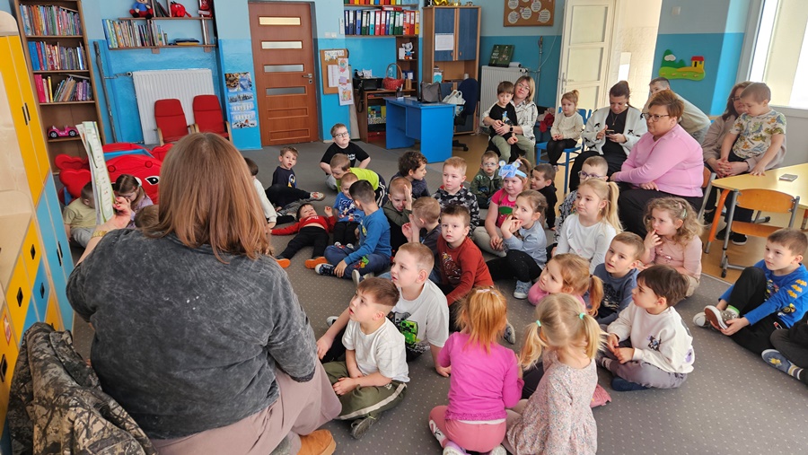 18 i 26 lutego gościliśmy Panią Beatę Mazur na spotkaniach głośnego czytania. Cykliczne odwiedziny odbywają się w ramach projektu „Książko ratuj – Terapeutyczna moc literatury”. Pani Beata jak zwykle zachwyciła nas doborem literatury. W dniu kota dzieci wysłuchały min. opowieści „Kocie ścieżki” autorstwa Piotra i Józefa Wilkoniów, a w dniu dinozaura pozycji „Chcę być dinozaurem” Agaty Widzowskiej. Nasza gościni jest miłośniczką poezji, więc i tym razem nie mogło zabraknąć solidnej dawki poezji dziecięcej.
