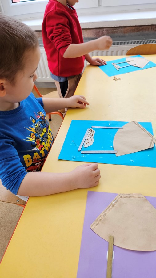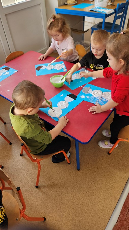 W styczniu podczas realizacji tematu kompleksowego „”dzieci wzięły udział w zajęciach podczas których rozmawialiśmy nt. dokarmiania ptaków zimą. Przedszkolaki wykonały pracę plastyczną, nie zapomnieliśmy także o ptaszkach, które przyfruwają do naszego karmnika w ogrodzie przedszkolnym do którego wsypywaliśmy ziarenka, udało nam się spotkać w nim gawrony i wrony, a tak bardzo czekaliśmy na wróbelka, sikorkę albo gila.
