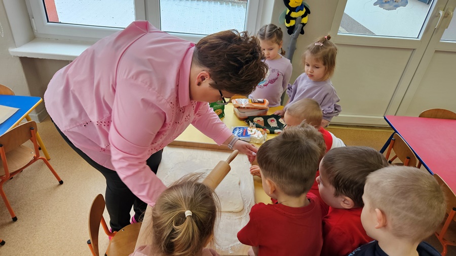 W ramach projektu „Magiczna moc bajek” upiekliśmy ciasteczka dla seniorów. Dzieci z zaangażowaniem pomagały przy robieniu ciasta oraz wykrawaniu kształtów. Nie zabrakło również kosztowania upieczonych ciasteczek.