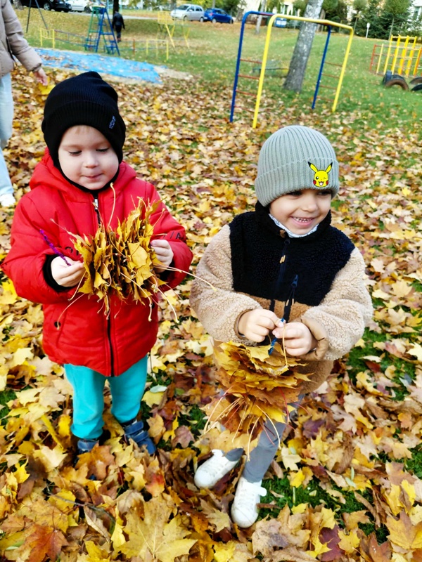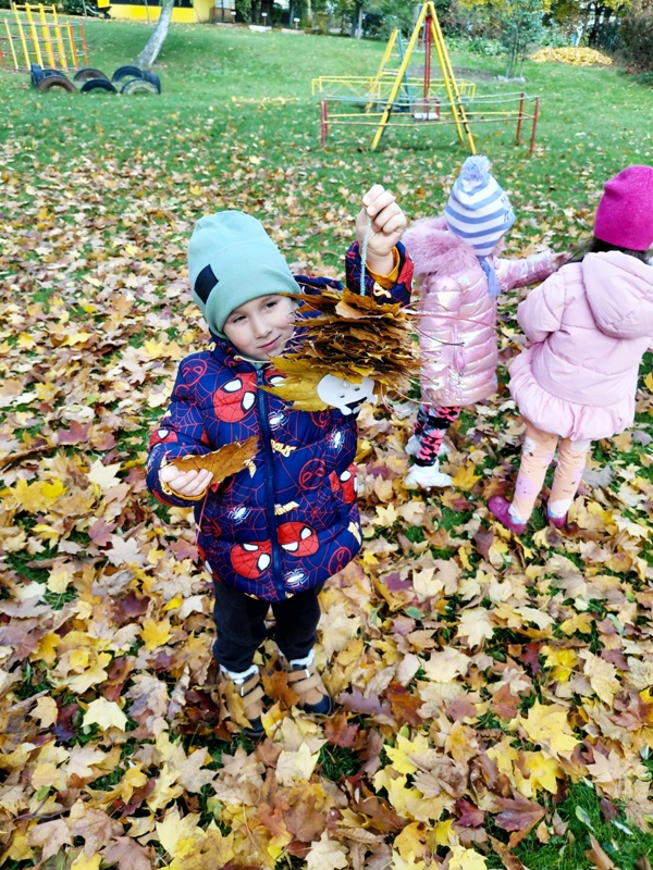 Krasnale uwielbiają jesienne spacery. Na spacerach obserwujemy zmiany zachodzące w przyrodzie oraz zbieramy dary jesieni, które później wykorzystujemy do zabaw.