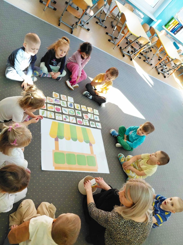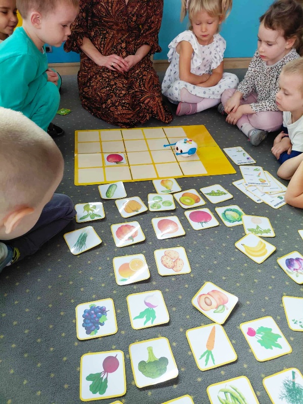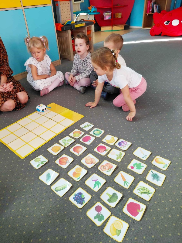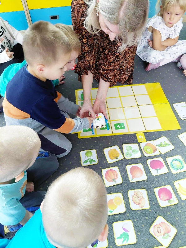 Nasze pierwsze zajęcia z robotem Zosia sprawiły dzieciom wiele radości i wywołały duże zaciekawienie sprytną zabawką. Szczególnie podczas zabawy „Klient na macie”. Zosia odpowiednio zaprogramowana „kupowała” dzieciom wybrane owoce i warzywa. Przedszkolaki uczestniczyły również w doświadczeniu „Co pływa, co tonie” oraz w zabawie dydaktycznej „Co znajdziemy na straganie”. Udział w tymże projekcie wprowadza element nowoczesnej technologii, dzięki której nauka staje się dla dzieci jeszcze bardziej atrakcyjna. Czekamy na następne wyzwania od robota Zosi.