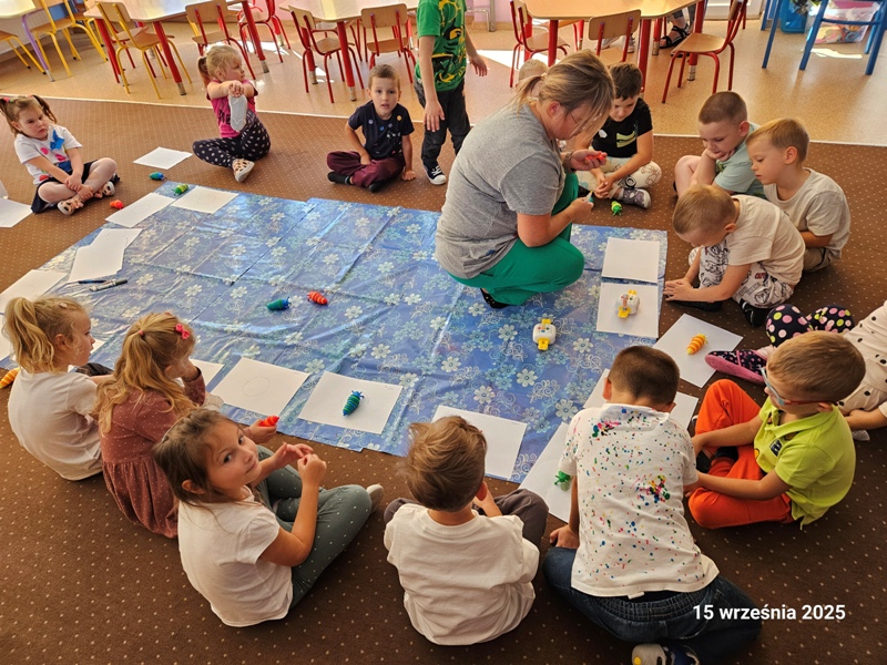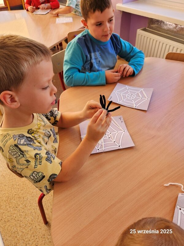 W naszej grupie dzieci poznawały „uroki jesieni” odkrywając tajemnicze „babie lato”. Po wysłuchaniu krótkiego opowiadania, dzieci wykonały pajęcze sieci oraz ulepiły pająki z plasteliny.