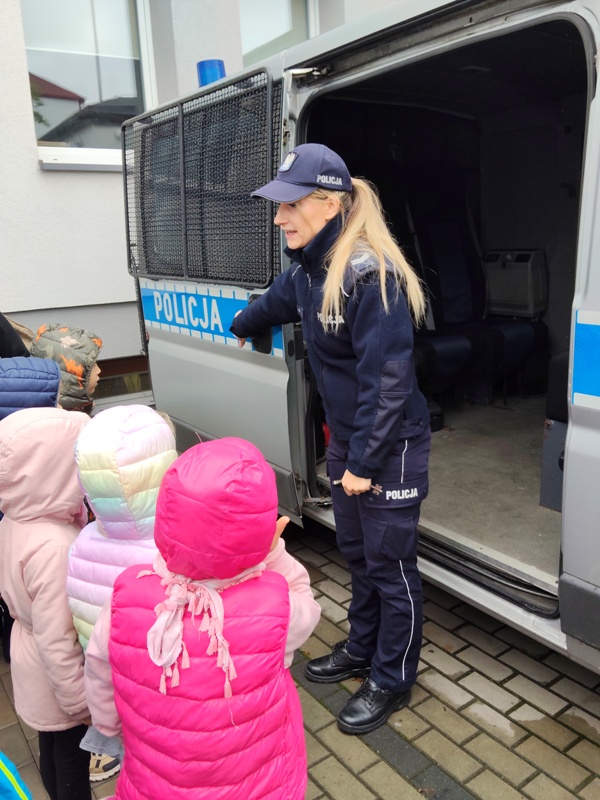 Zwiedzanie komisariatu było dla dzieci fascynującym doświadczeniem, które pozwoliło lepiej zrozumieć pracę i codzienne wyzwania z jakimi mierzą się policjanci. Dzieci podczas wizyty zapoznały się z pomieszczeniami służbowymi, a na zakończenie spotkania zwiedzały radiowóz policyjny.