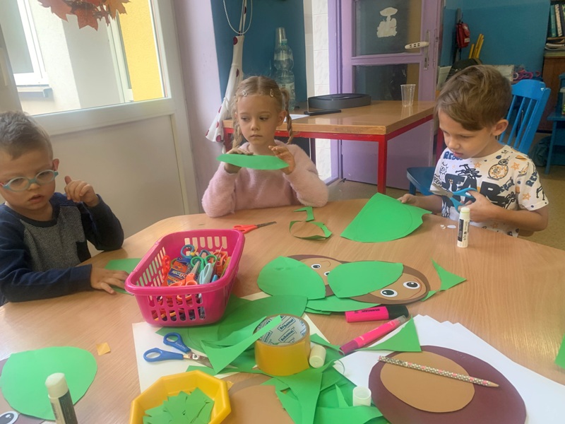 W październiku w ramach projektu „Zabawa sztuką” wykonaliśmy jesienne liście w formie przeplatanki.