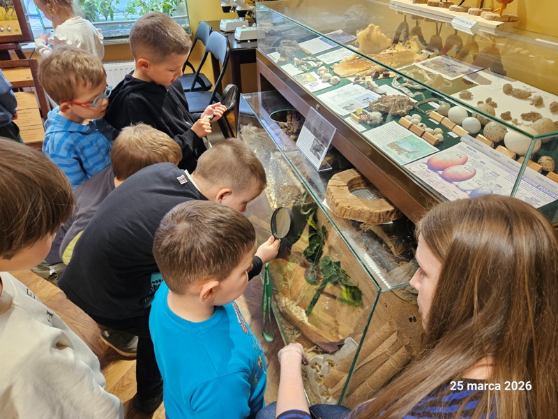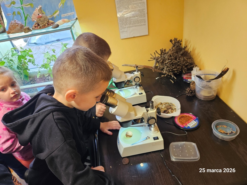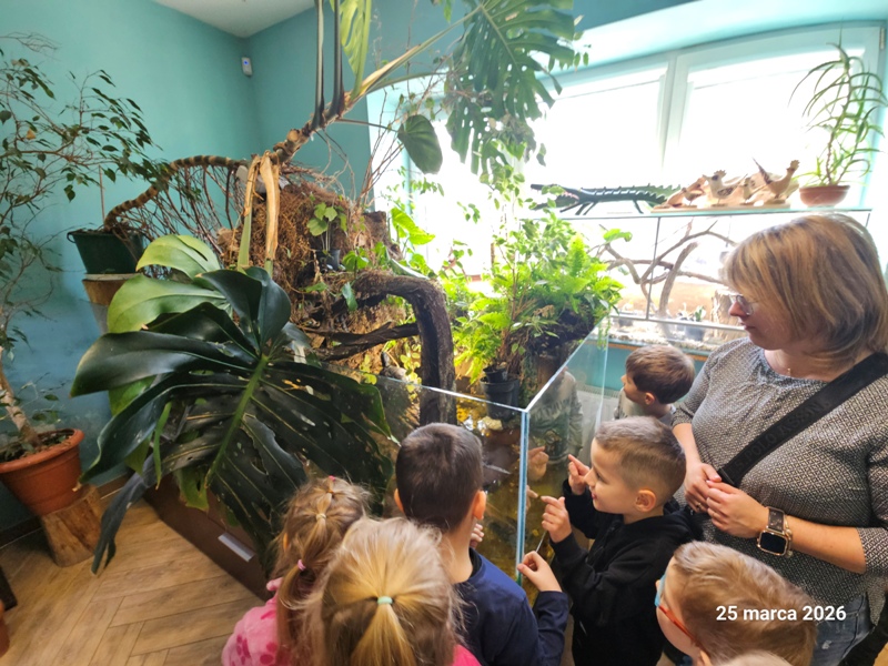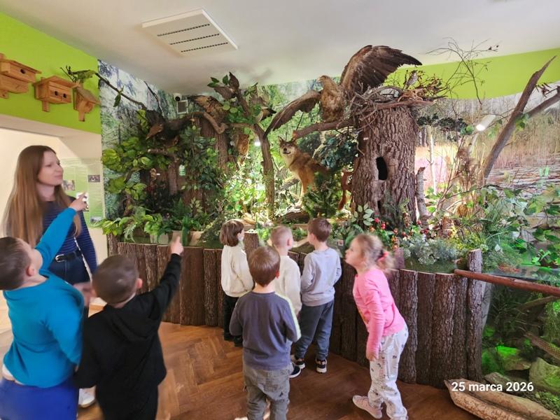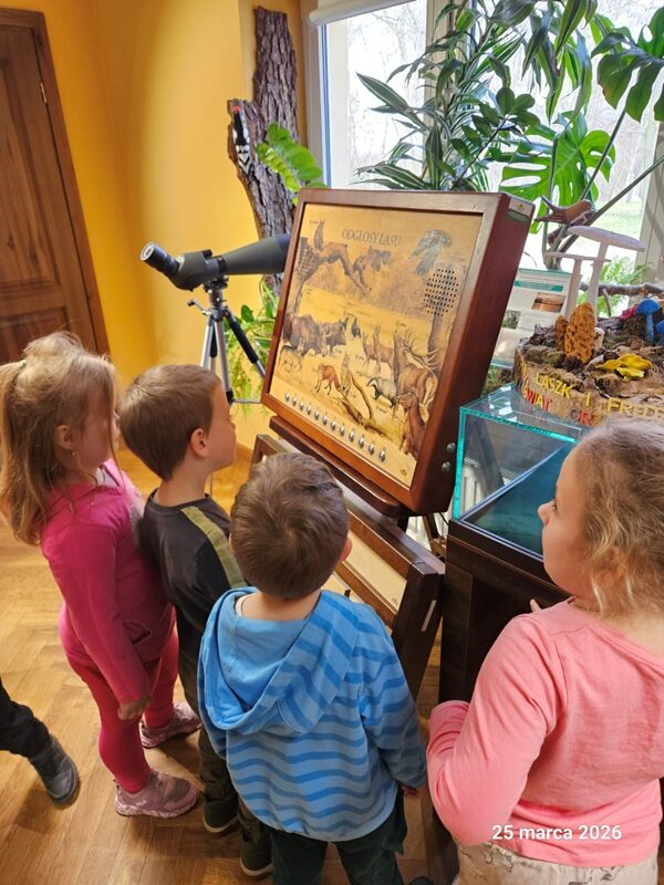 Przedszkolaki odwiedziły Centrum Natura 2000. Podczas wizyty dzieci zwiedzały pomieszczenia ośrodka, poznając ciekawostki przyrodnicze oraz różnorodność świata roślin i zwierząt. W trakcie zajęć przyrodniczych miały okazję poszerzyć swoją wiedzę poprzez aktywne uczestnictwo w zadaniach i rozmowach. Najwięcej radości sprawiły obserwacje roślin na świeżym powietrzu przez lupy, które pozwoliły dostrzec drobne szczegóły natury. Wycieczka była doskonałą okazją do rozwijania zainteresowań przyrodniczych oraz bezpośredniego kontaktu z naturą.