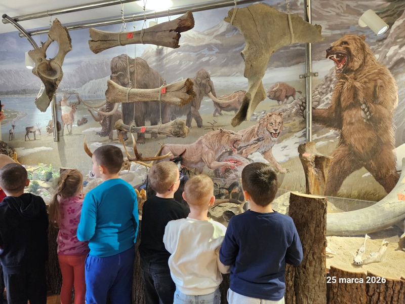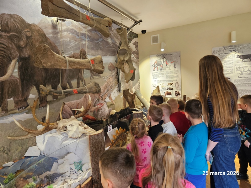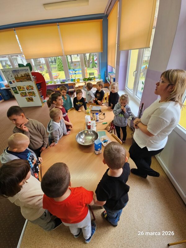 Dzieci przeniosły się w niezwykły świat dinozaurów. Podczas zajęć poznały zawód paleontologa oraz dowiedziały się, na czym polega jego praca i czym są wykopaliska. Przedszkolaki miały okazję wcielić się w małych odkrywców – samodzielnie prowadziły „wykopaliska”, poszukując ukrytych szczątków dinozaurów. Dużą radość sprawiło również roztapianie lodowych jaj dinozaurów i odkrywanie ukrytych w nich niespodzianek. Nie zabrakło także elementów edukacji matematycznej – dzieci przeliczały jaja dinozaurów oraz dopasowywały elementy zbiorów, rozwijając umiejętność liczenia i logicznego myślenia. Zajęcia dostarczyły przedszkolakom wielu emocji, rozwijały ciekawość świata oraz zachęcały do wspólnej zabawy i odkrywania tajemnic prehistorycznego świata.