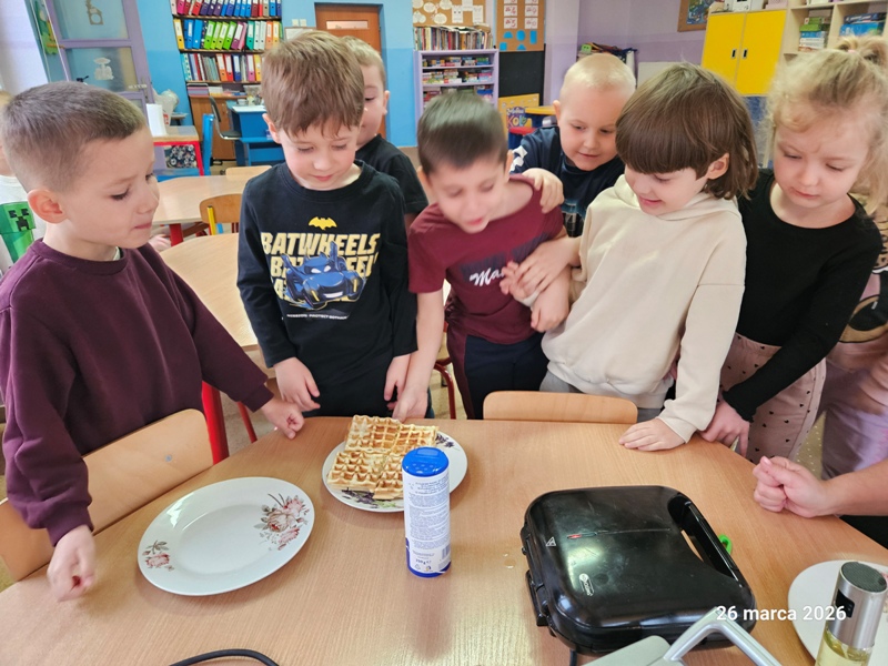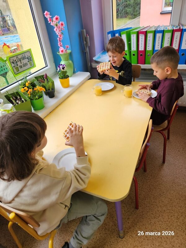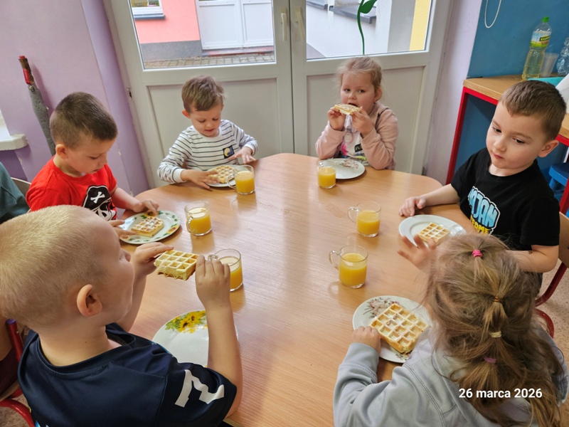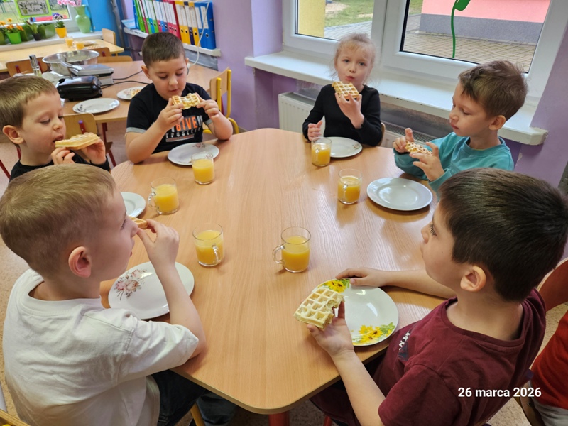 W naszym przedszkolu odbył się Dzień Gofra. Dzieci z radością uczestniczyły w zajęciach kulinarnych – wspólnie przygotowały ciasto, a następnie piekły pachnące, chrupiące gofry. Najprzyjemniejszym momentem było oczywiście ich smakowanie. Zajęcia sprawiły dzieciom wiele radości, a jednocześnie były okazją do nauki współpracy i poznawania podstaw gotowania.