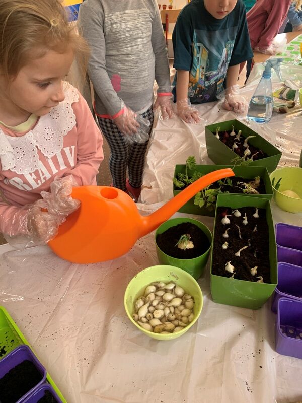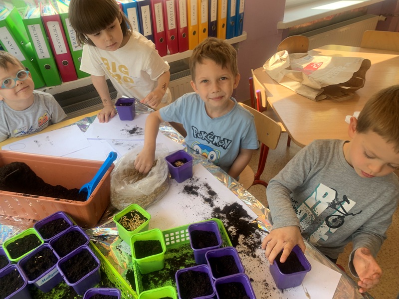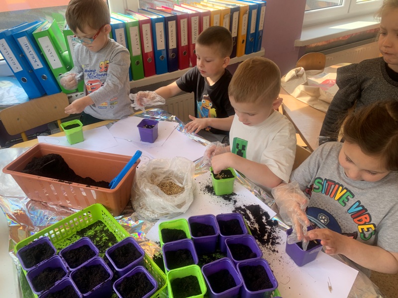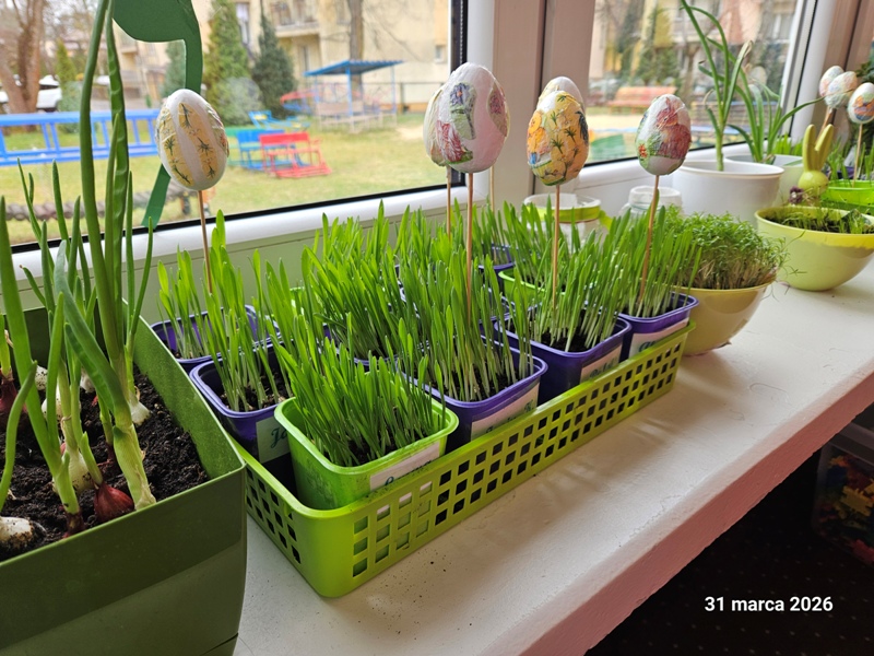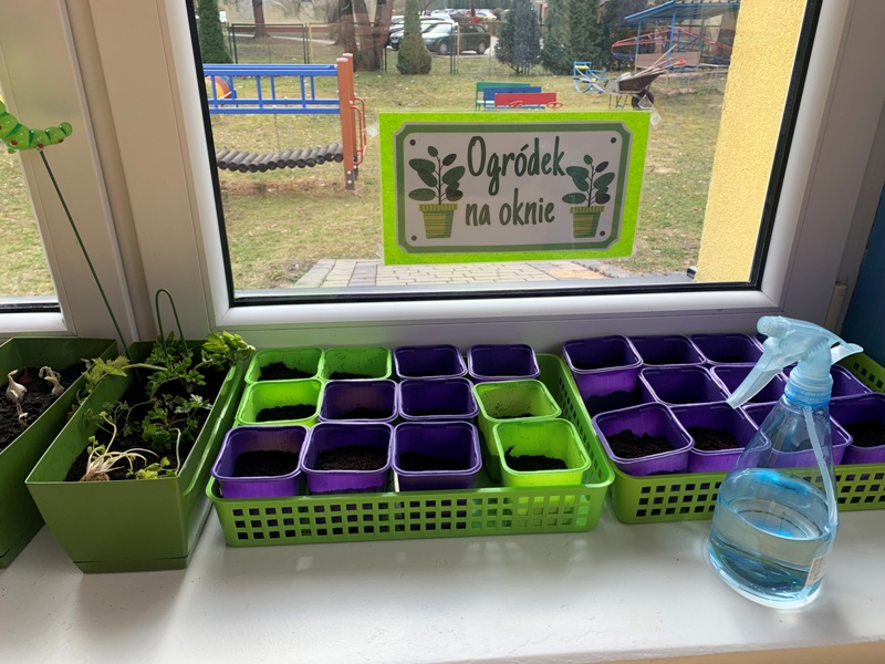 W naszym przedszkolu powstał wiosenny ogródek na parapecie. Dzieci z wielkim zaangażowaniem wysiewały owies, rzeżuchę, szczypiorek, koperek oraz nasiona kwiatów. Podczas zajęć poznały warunki niezbędne do wzrostu roślin oraz uczyły się ich codziennej pielęgnacji. Zakładanie ogródka sprawiło dzieciom wiele radości i było doskonałą okazją do rozwijania zainteresowań przyrodniczych oraz obserwowania, jak z małych nasion wyrastają zielone rośliny.