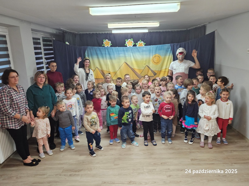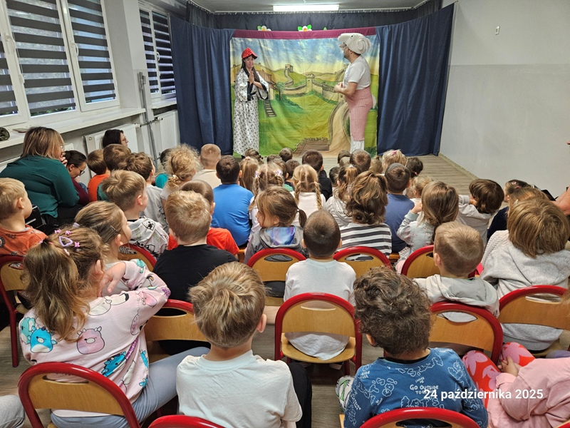Nasze przedszkole odwiedził Teatr „Krak Arts” z Krakowa z przedstawieniem „Koziołek nie Matołek”. Dzieci z dużym zainteresowaniem śledziły pełną humoru i przygód podróż bohatera po różnych krajach świata. Widowisko było pełne muzyki, ruchu i interakcji, dzięki czemu najmłodsi aktywnie uczestniczyli w wydarzeniu, rozwijając wyobraźnię oraz wrażliwość teatralną.